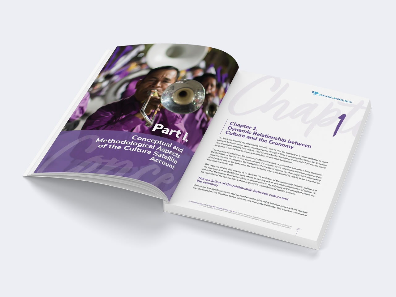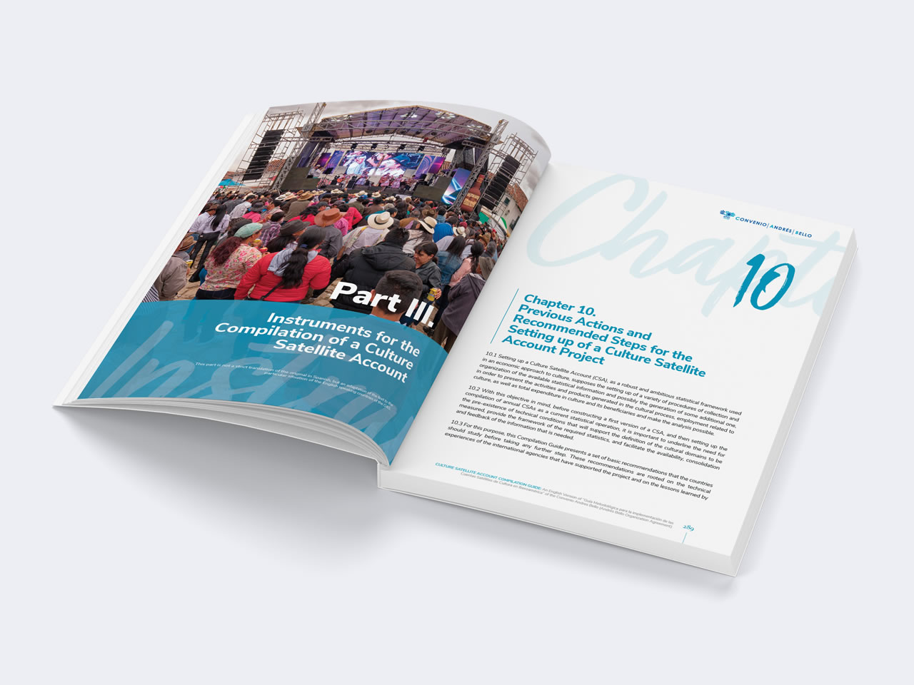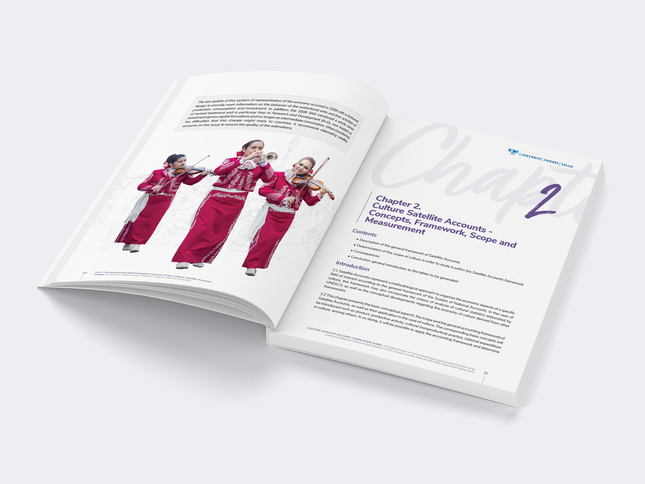 Diseño y Diagramación de la versión en inglés de la “Guía Metodológica para la implementación de las Cuentas Satélites de Cultura en Iberoamérica” de la Organización del Convenio Andrés Bello preparado en asociación con la Organización de los Estados Americanos OEA. La Organización del Convenio Andrés Bello de Integración Educativa, Científica, Tecnológica y Cultural, es un organismo intergubernamental conformado por: Bolivia, Chile, Colombia, Cuba, Ecuador, España, México, Panamá, Paraguay, Perú, República Dominicana y Venezuela.