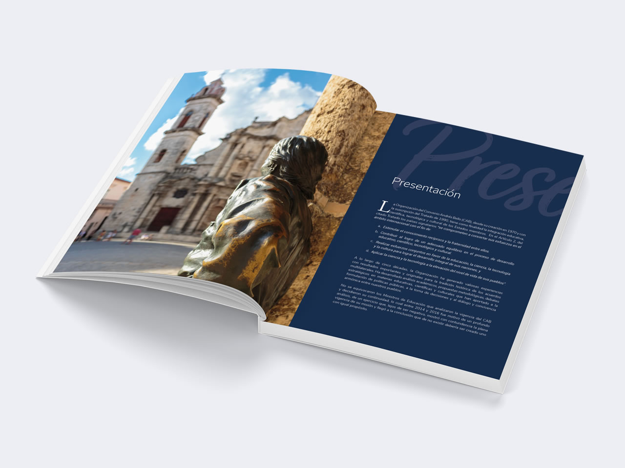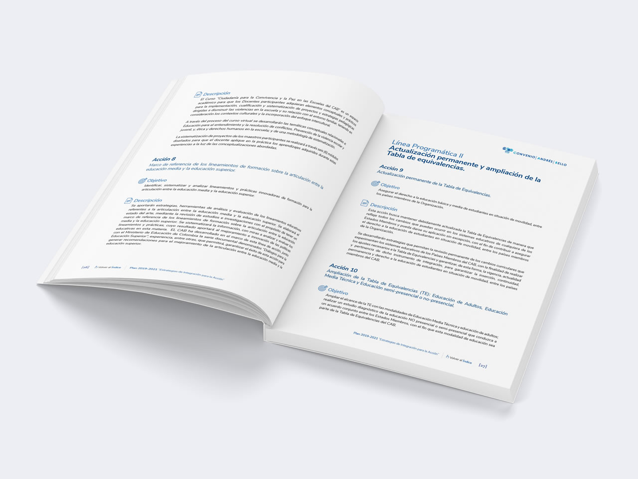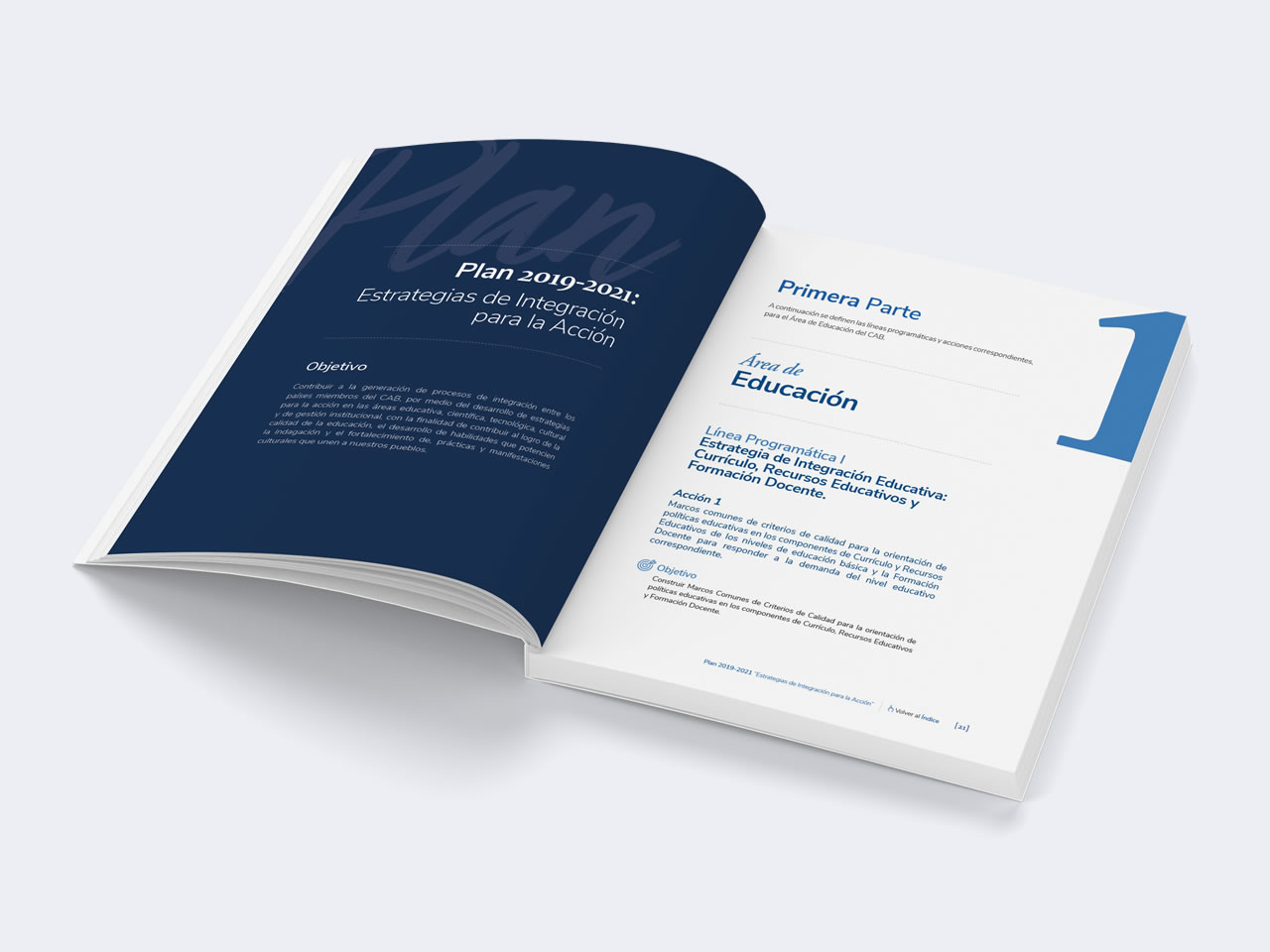 Diseño y Diagramación de Libro Plan 2019-2021: Estrategias de integración para la acción; para el Convenio Andrés Bello. La Organización del Convenio Andrés Bello de Integración Educativa, Científica, Tecnológica y Cultural, es un organismo intergubernamental conformado por: Bolivia, Chile, Colombia, Cuba, Ecuador, España, México, Panamá, Paraguay, Perú, República Dominicana y Venezuela.