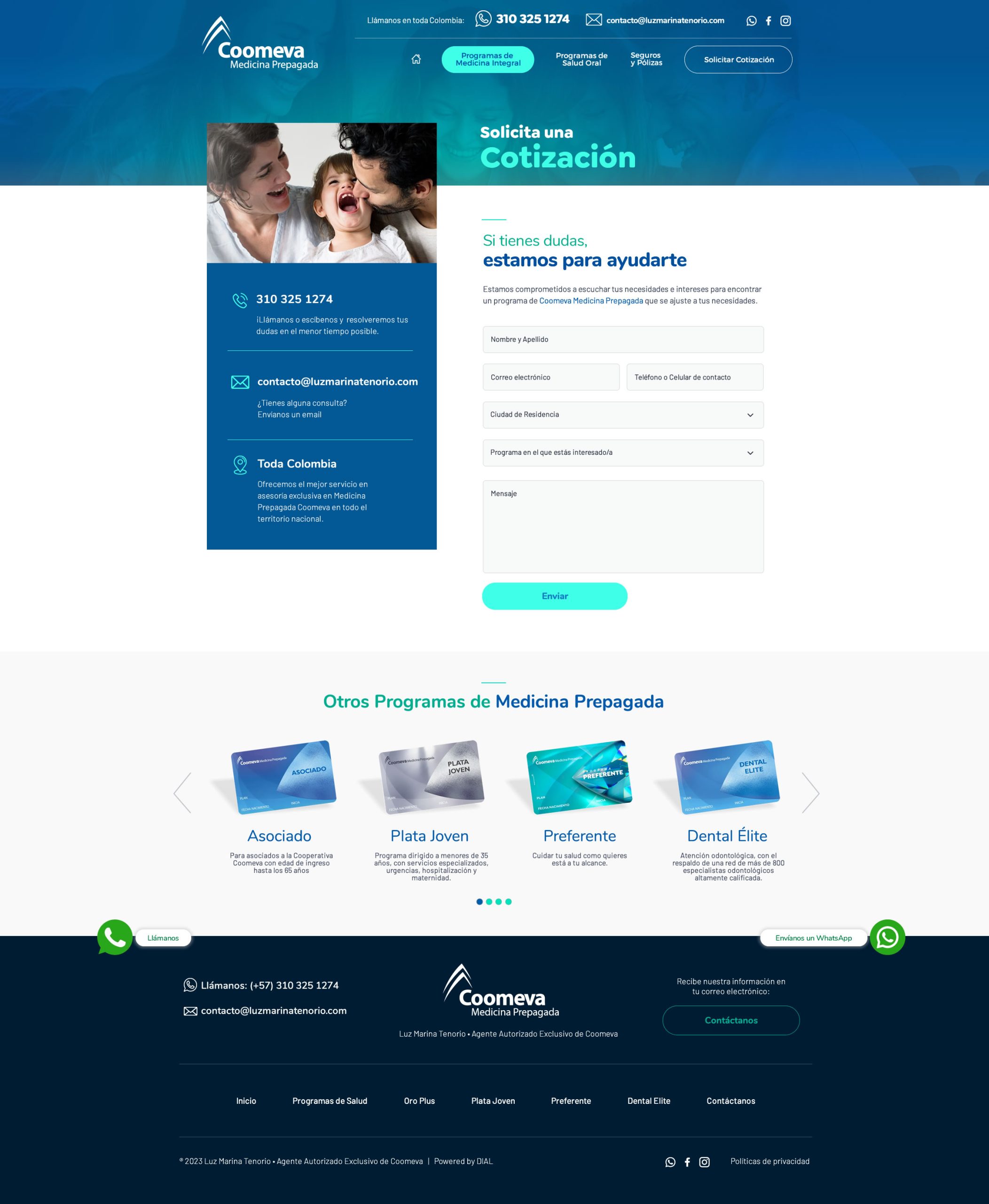 Servicios de Medicina Prepagada Coomeva – Luz Marina Tenorio nadaista2024-01-16T11:10:58-05:00Sitios Web| Sitio Web dinámico para Luz Marina Tenorio, Agente Autorizado Exclusivo de Coomeva Servicios de Medicina Prepagada. Visita este sitioCSS 3Desarrollo WebDiseño WebHTML 5JavascriptResponsive DesignWordpress