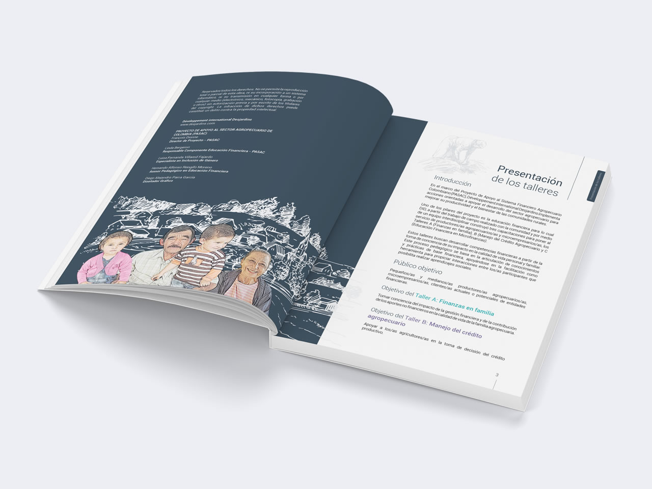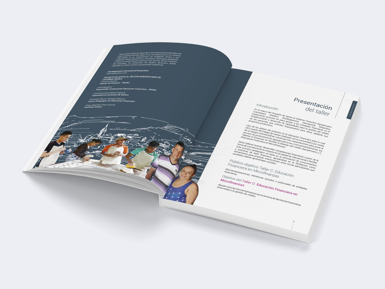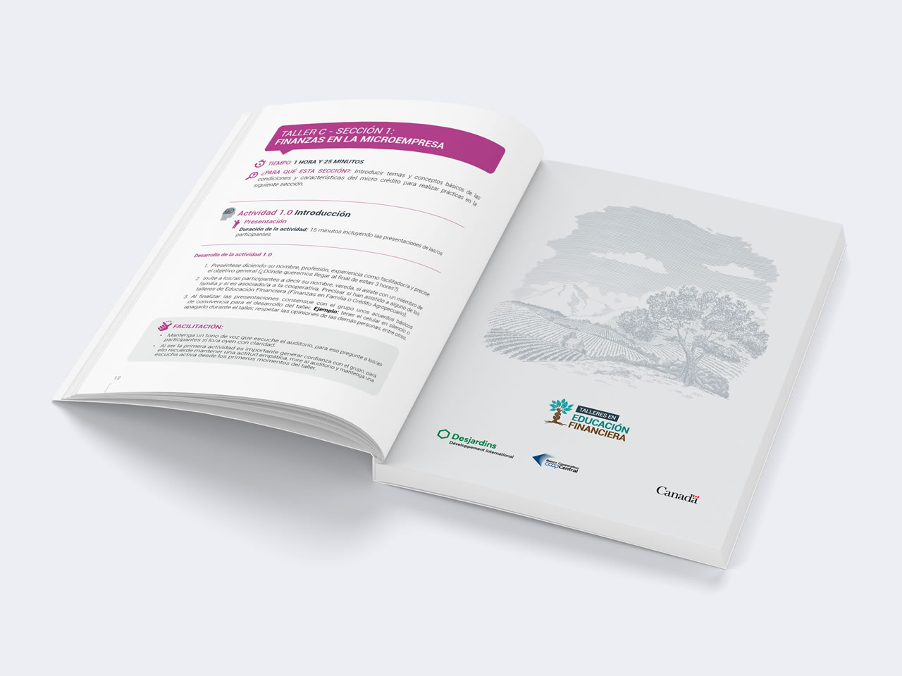 Diseño y Diagramación de la Guía de Talleres en Educación Financiera para el Banco Canadiense Desjardins, el Banco Cooperativo Coop Central y el Gobierno de Canadá.